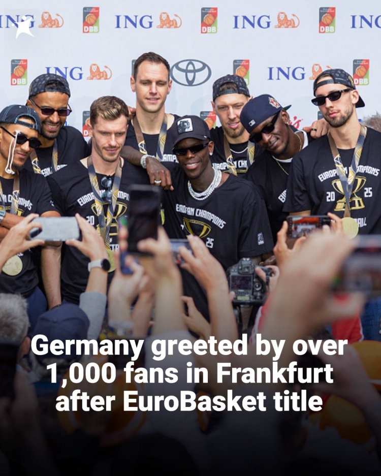据欧洲媒体Basketnews报道,德国男篮回到法兰克福之后,受到超过1000名球迷热烈欢迎。球迷们和球队一起庆祝夺冠。
