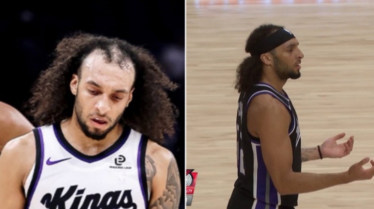 在此前对阵猛龙的季前赛中,国王官方社媒晒出的一张照片可以看到德文-卡特的发际线已经非常靠上了,而这张图也迅速在网络上流传。而在上一场对阵开拓者的比赛,德文-卡特就带上了发带遮盖发际线。