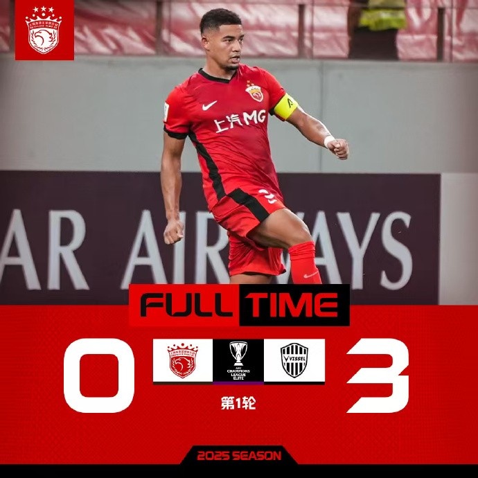 2025/2026亚冠精英联赛第1轮,上海海港0-3神户胜利船。第19分钟,对方外援埃里克用一脚世界波打破僵局。随后,海港队加强攻势,但古斯塔沃的单刀和李圣龙的头球都未能将比分改写。第40分钟和第44...