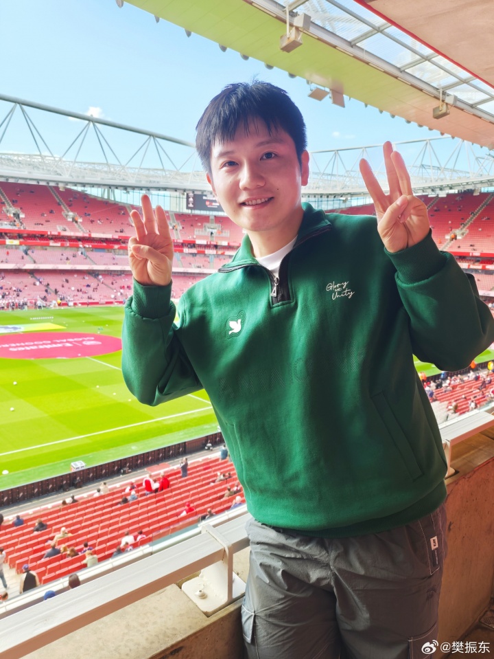 樊振东在社媒写道:感谢Premier League的邀请,第一次现场看英超,感受一座城市的心跳。