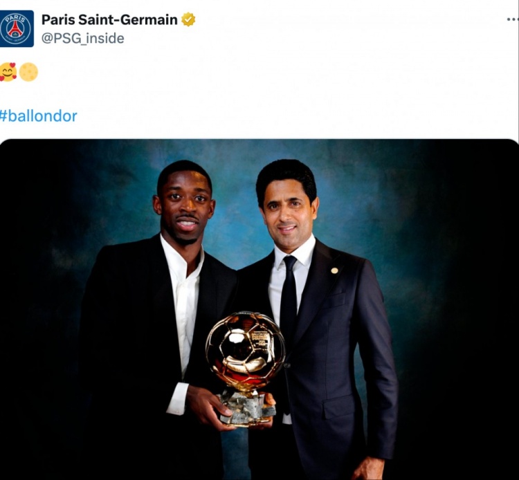 于是,纳赛尔优先考虑了金球奖颁奖典礼,并陪同登贝莱一起见证了这一历史性时刻。