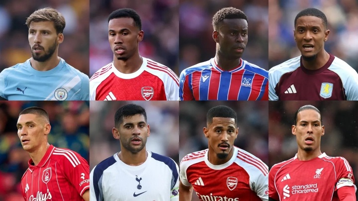 候选人有:鲁本-迪亚斯(曼城)、加布里埃尔(阿森纳)、格伊(水晶宫)、孔萨(维拉)、米伦科维奇(诺丁汉森林)、罗梅罗(热刺)、萨利巴(阿森纳)、范迪克(利物浦)。