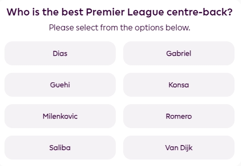 英超官方也借这个机会发布了一则投票:谁是英超目前最好的中后卫?