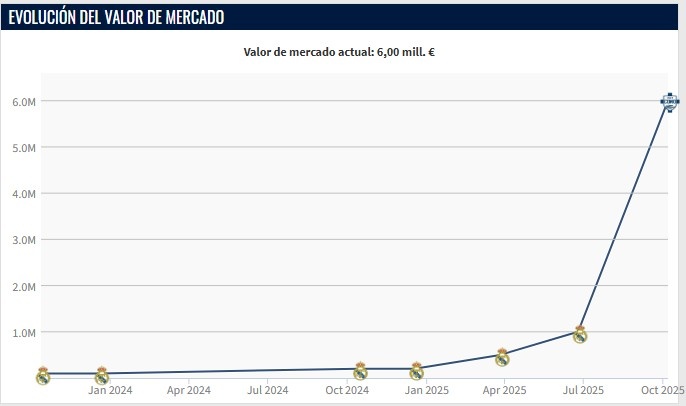 雅各布-拉蒙司职中卫,今夏他从皇马转会加盟科莫,费用250万欧元。德转上一次统计时,雅各布-拉蒙的身价为100万欧元,而在最新的数据中,他的身价已经上涨至600万欧元。