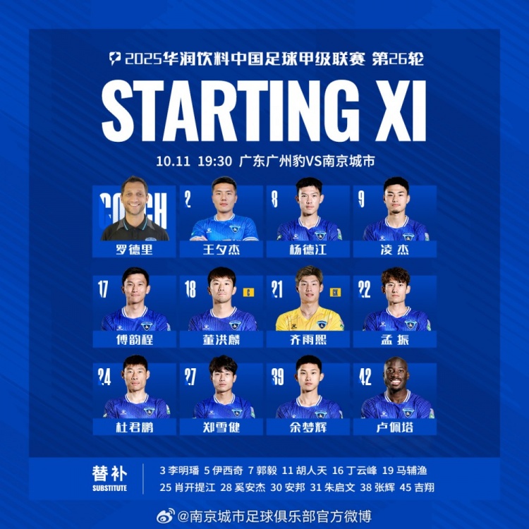 2025华润饮料中甲联赛第26轮,广东广州豹VS南京城市 首发名单出炉,让我们并肩战斗!