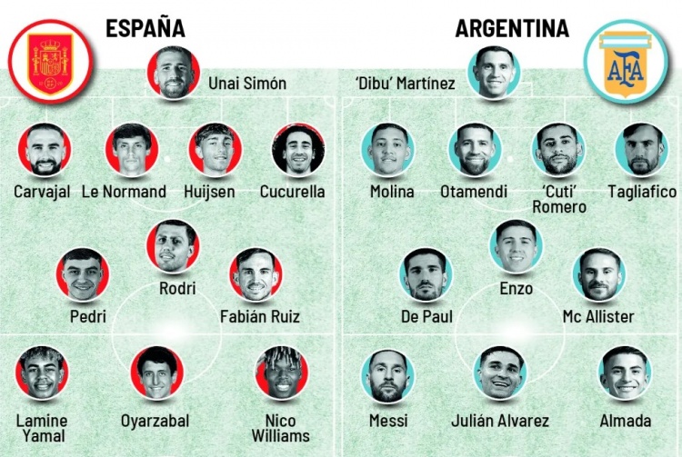 10月13日讯 根据《马卡报》报道,西班牙队vs阿根廷队的欧美杯可能明年3月在多哈进行,《马卡报》随后撰文对比了两队首发情况。